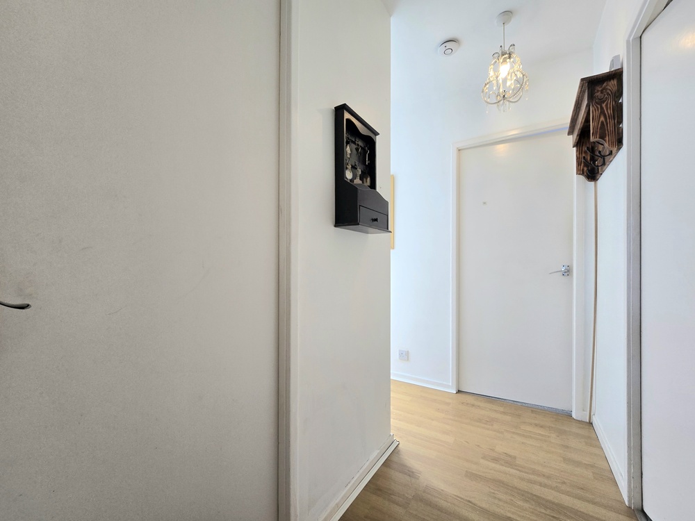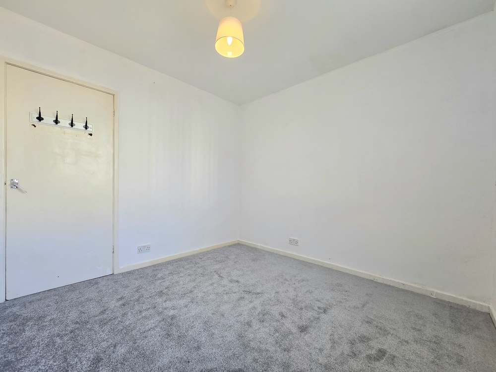 The welcoming hallway leads to a bright living room featuring a charming bay window and a cosy wood-burning stove. The property boasts two well-proportioned double bedrooms and a modern family bathroom with a generous walk-in shower.